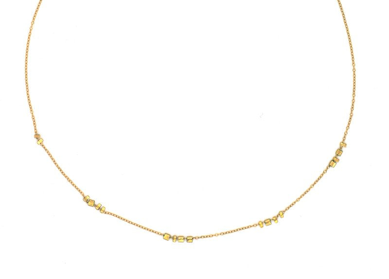 THOUGHTFULLY DESIGNED, THIS IS A NECKLACE TO WEAR FOREVER. THE LINE AND DOT TICKS REFERENCE MORSE CODE WITH A MEANINGFUL MESSAGE. IT IS SUBTLE AND ELEGANT WHEN WORN SOLO, AND ALSO LAYERS WELL WITH OTHERS. PAIR IT WITH AN OVERSIZED CRISP COLLARED SHIRT. OTHER MORSE CODE NECKLACES AVAILABLE - WE CAN ORDER